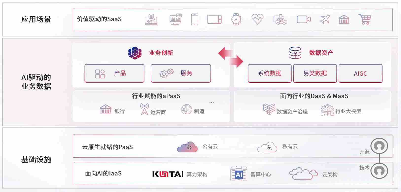 数字时代,,围绕企业数字化转型的关键要素,,z6mg·人生就是博数码开创性的提出数云融合战略和技术体系框架,,,着力在云原生、、、、数字原生、、AI原生和信创产业上架构产品和服务能力,,为处在不同数字化转型阶段的快消零售、、、汽车、、、、金融、、医疗、、、、政企、、、教育、、、运营商等行业客户提供泛在的敏捷IT能力和融合的数据驱动能力,,构建跨界融合创新的数字业务场景和新业务模式,,,,助力企业级客户建立面向未来的核心能力和竞争优势,,,全面推动社会的数字化、、智能化转型升级。。